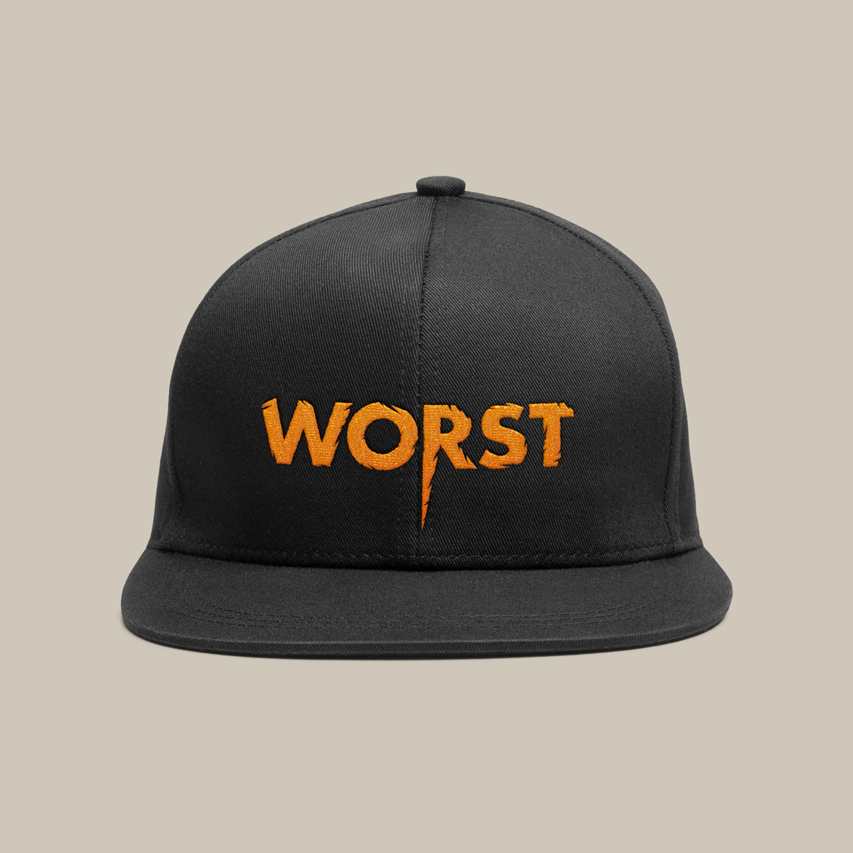 Klarer Look. Harte Kante. Das orange WORST-Logo auf schwarzer Snapback macht direkt Ansage – lautlos, aber unübersehbar.
